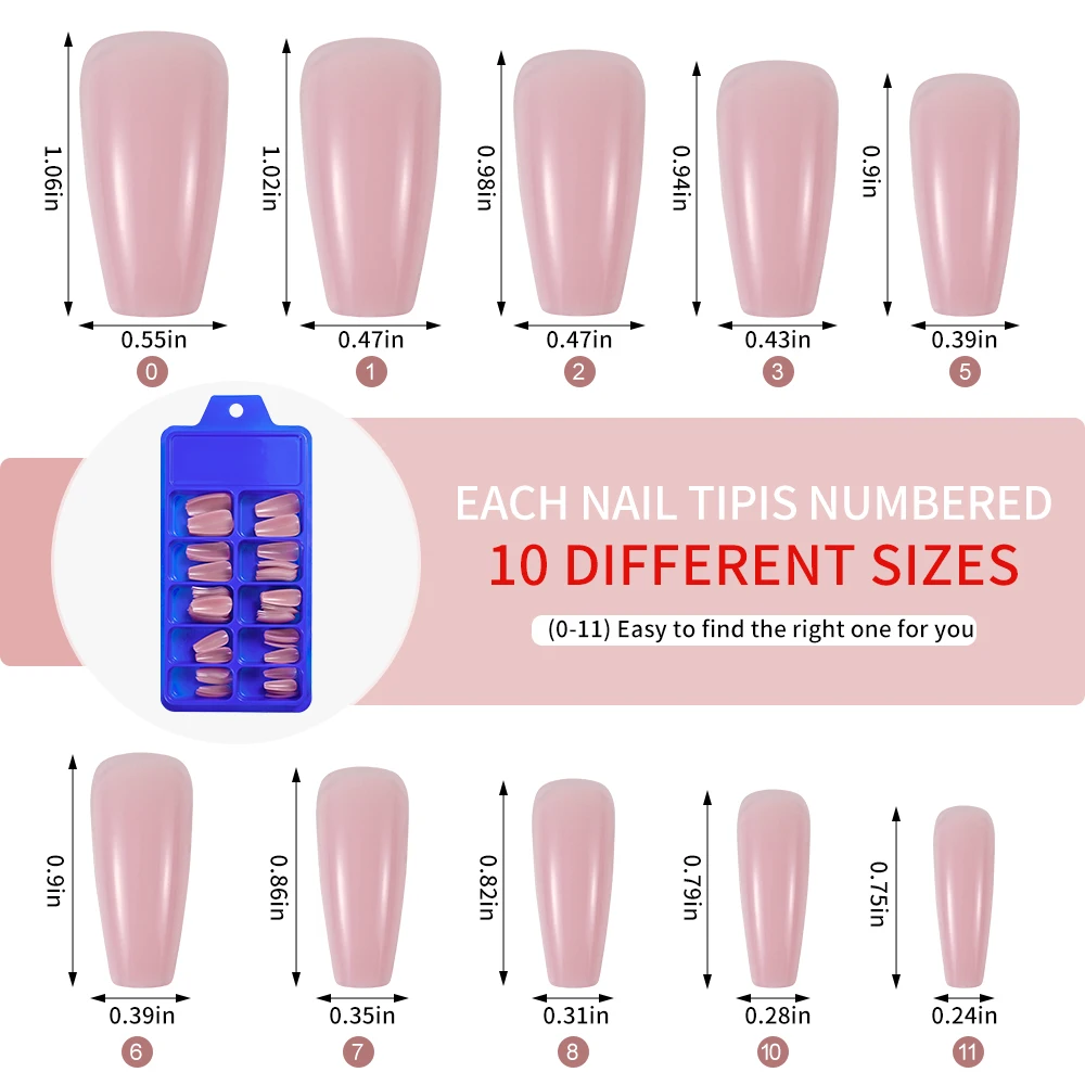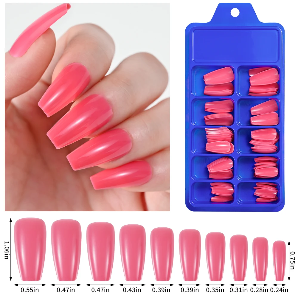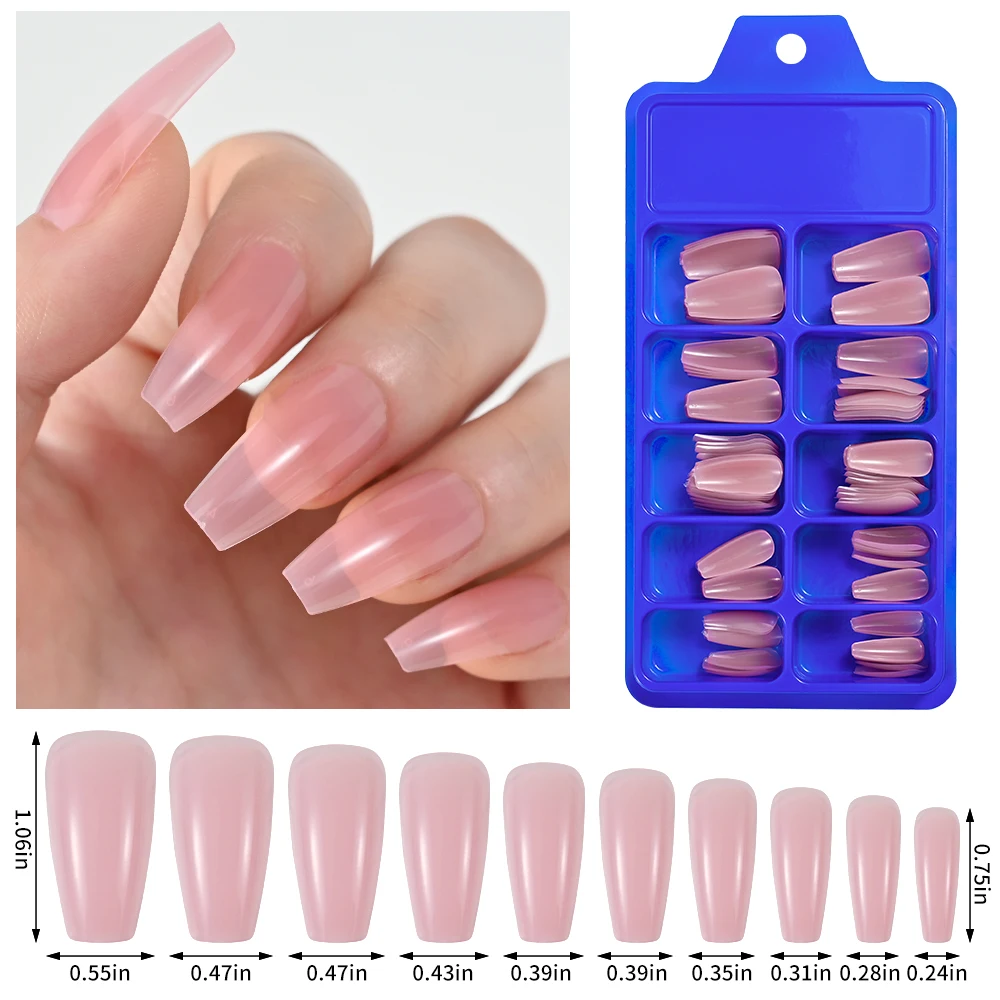 100pcs Coffin Design Fake Nails Art Tools Nude Pink Colors Ballerina False Nails Press On Full Fingernails Manicure Tips