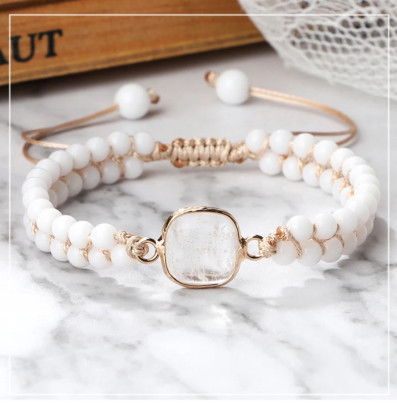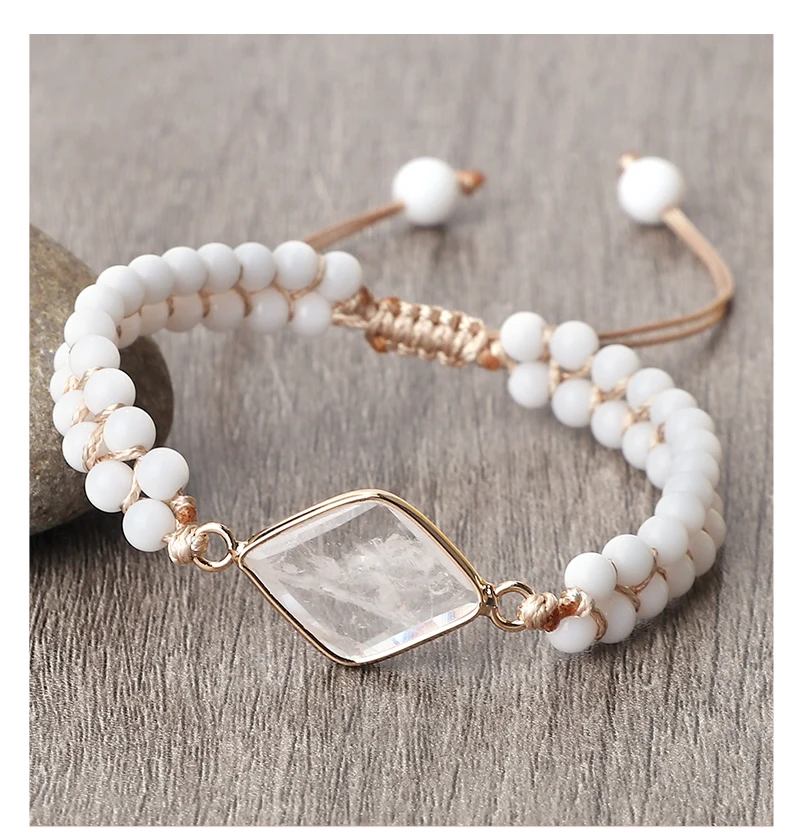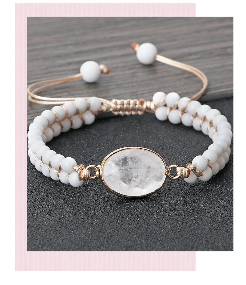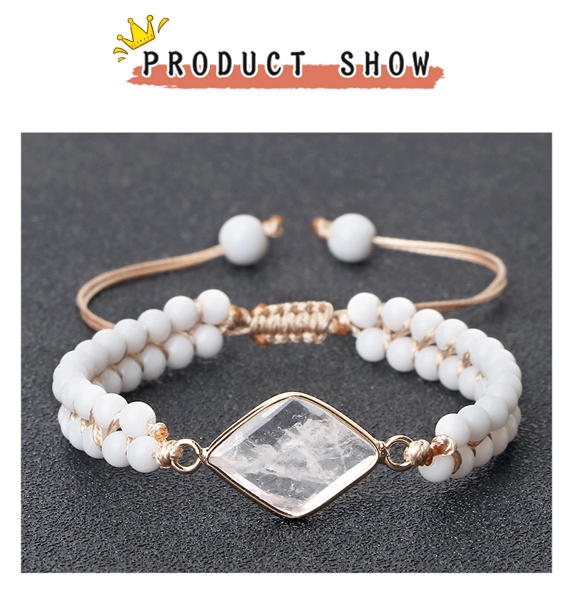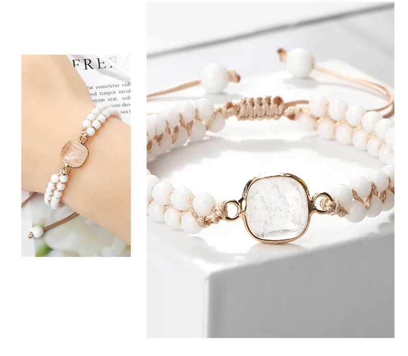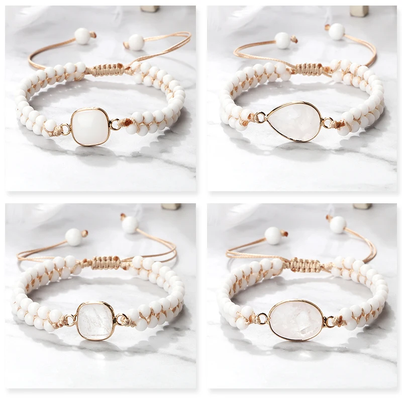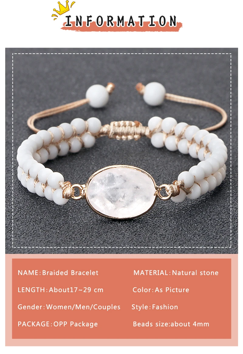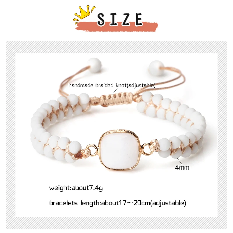 4mm Beads Natural Stone Bracelets&Bangles White Porcelain Braided Elastic Rope Handmade Adjustable For Woman Man Couple Jewelry