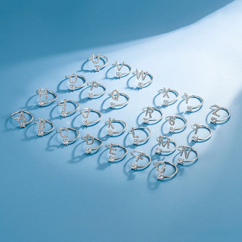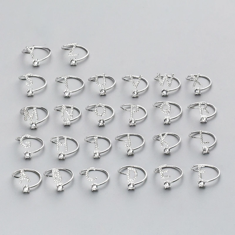 925 Sterling Silver Initial Rings for Women Girls, Adjustable Initial Rings Cubic Zirconia Stackable Alphabet Letter Rings Gift