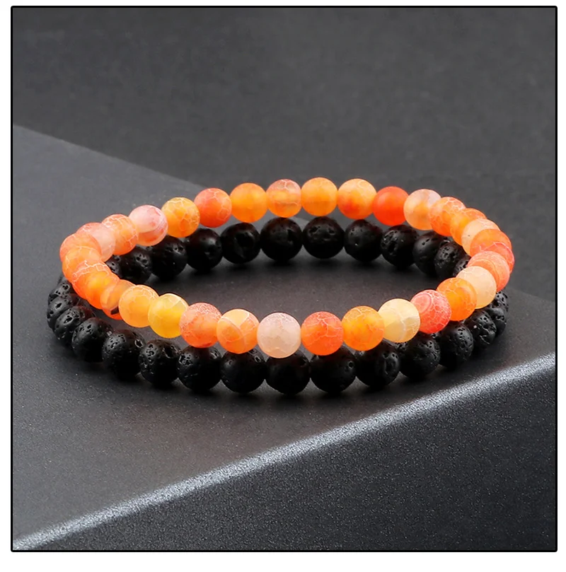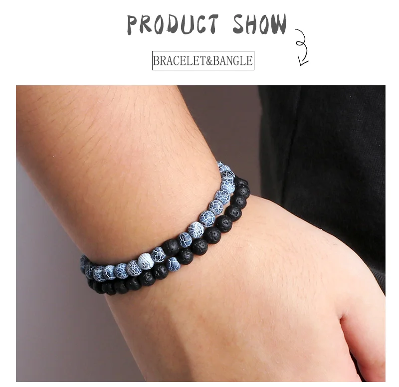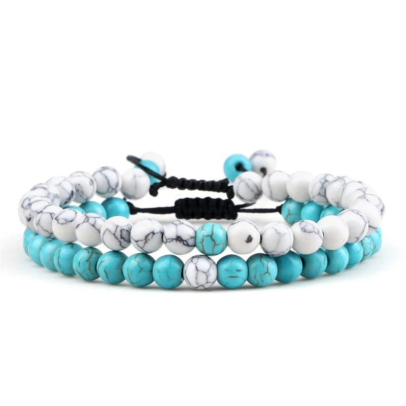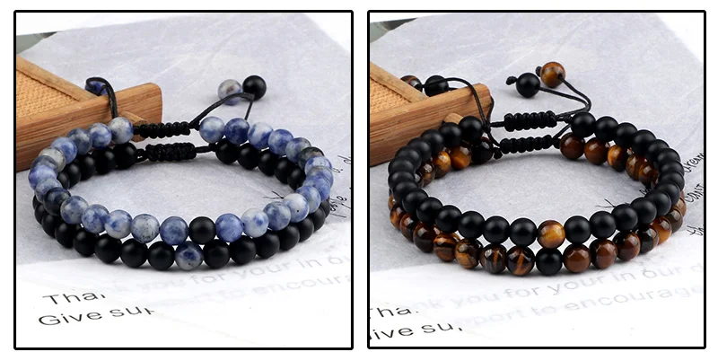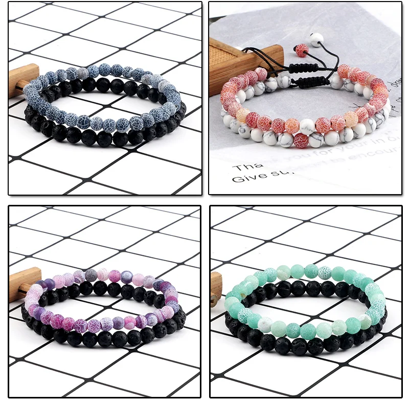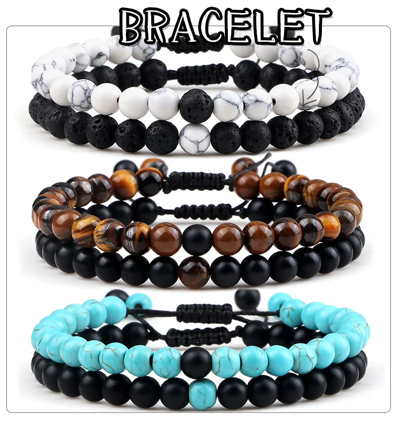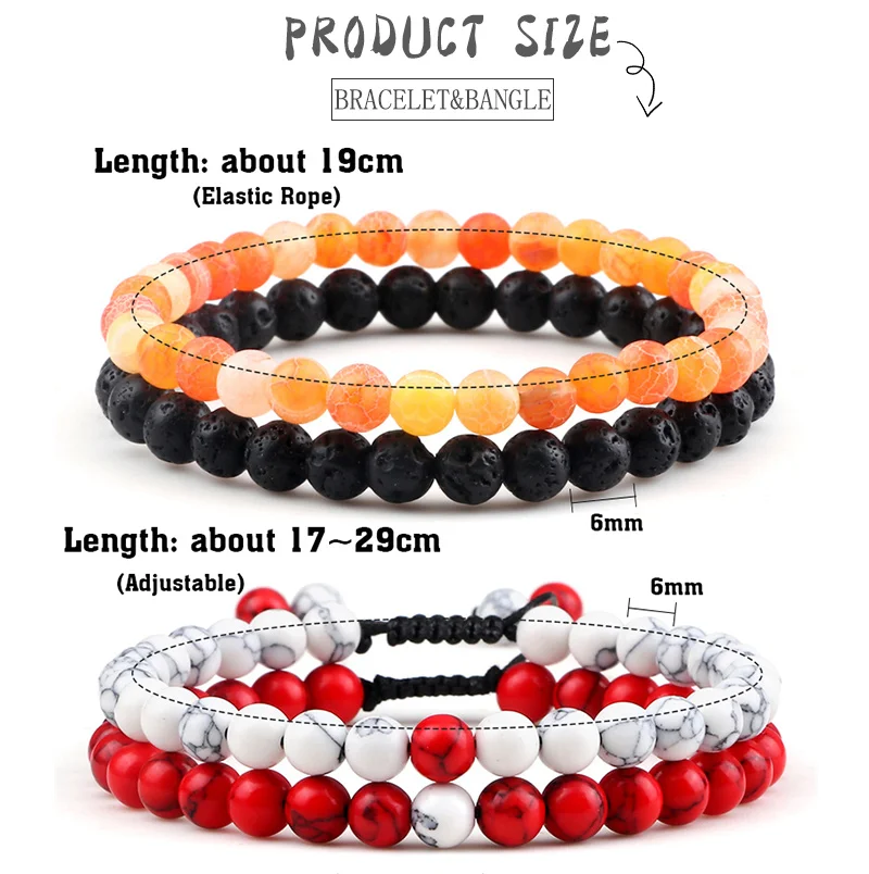 Adjustable 2pcs/set Beads Bracelets for Couple Classic 6mm Natural Black White Stone Braided Distance Bracelet Men Women Jewelry
