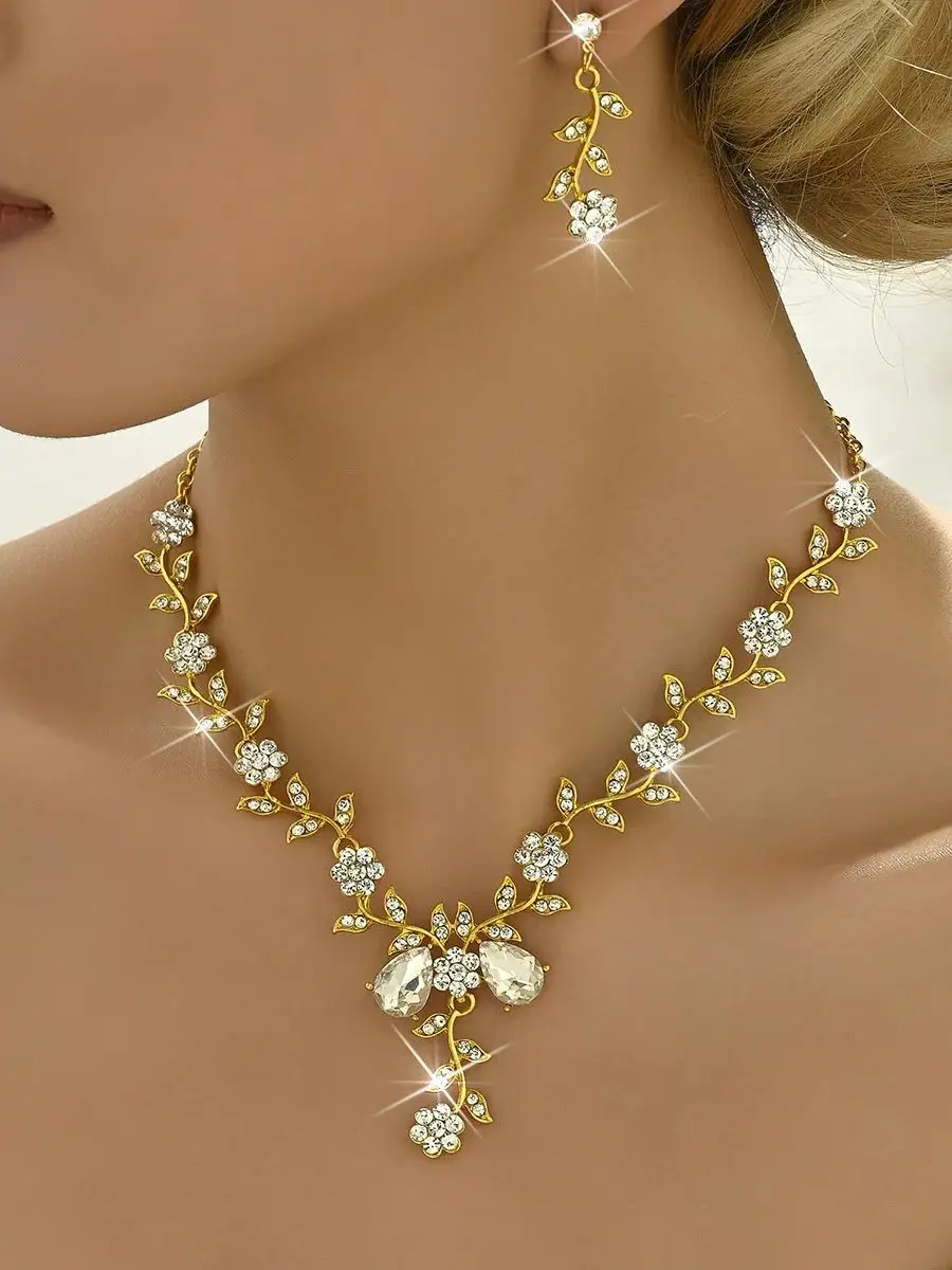 Bridal Rhinestone Jewelry Set for Women, Crystal Necklace and Earrings Set, Wedding Prom Accessories, Sparkling Statement Jewelr