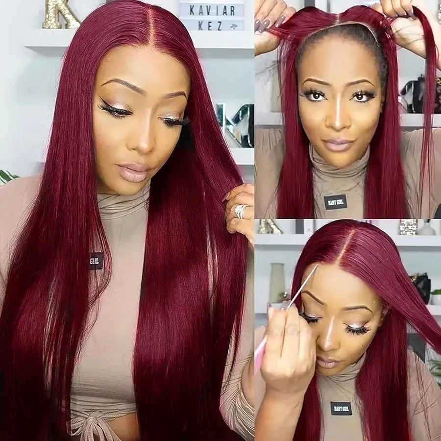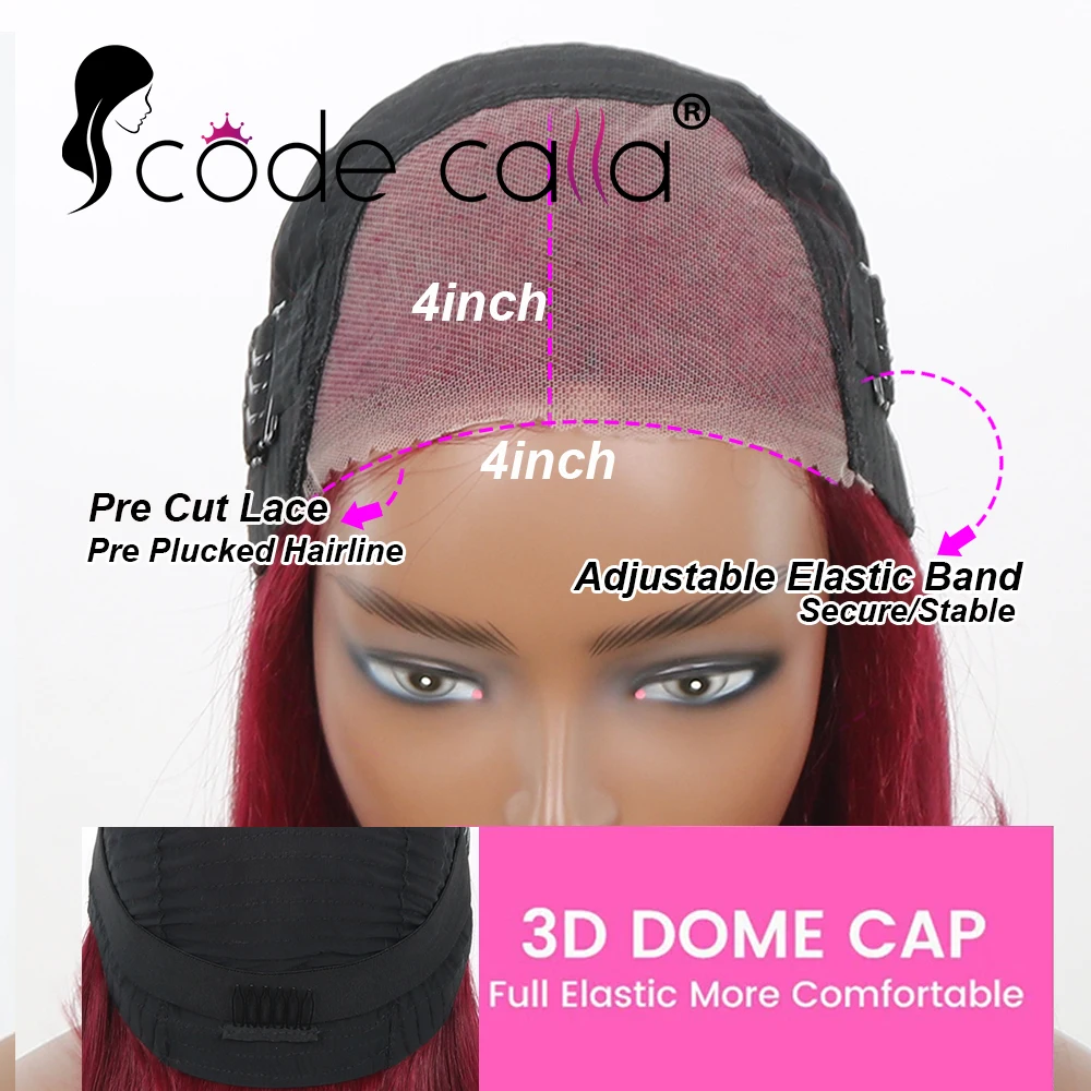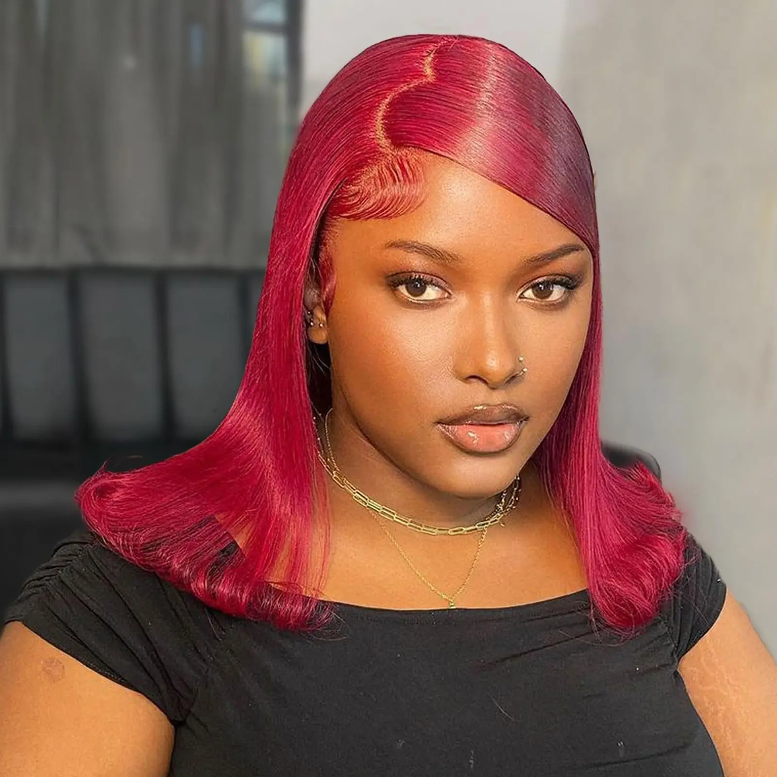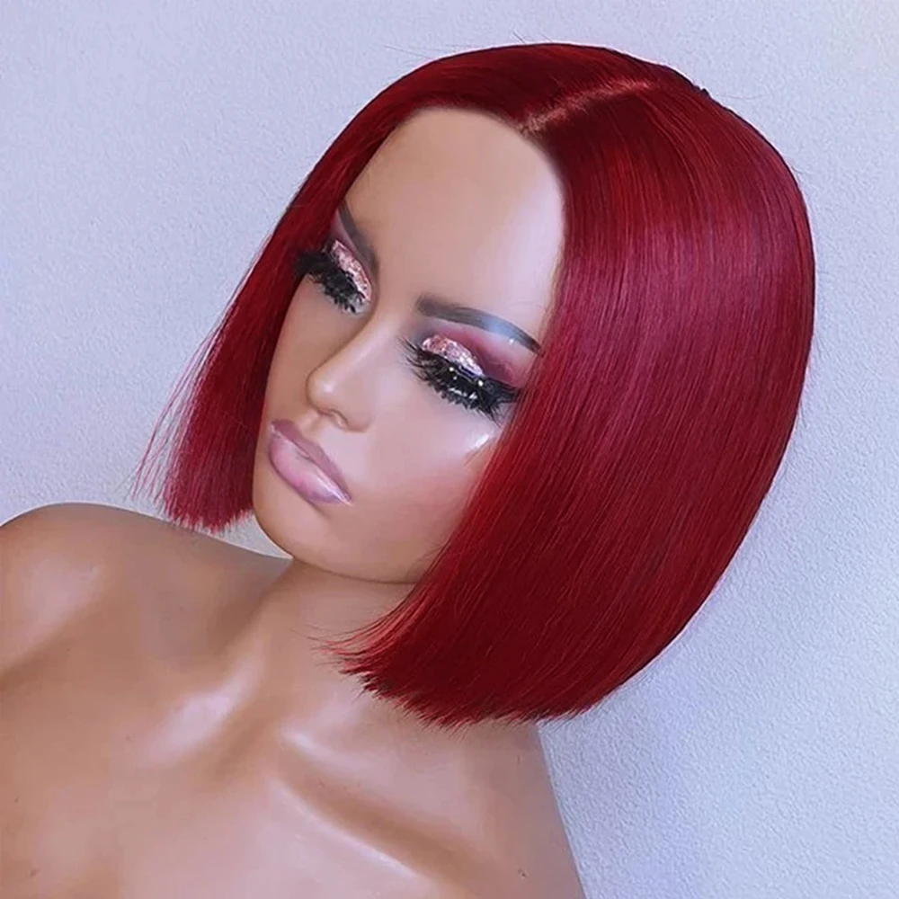 Burgundy Glueless Wig Human Hair Ready To Wear And Go Bob Wigs For Women 6x4 Frontal Straight Lace Front Wigs On Sale