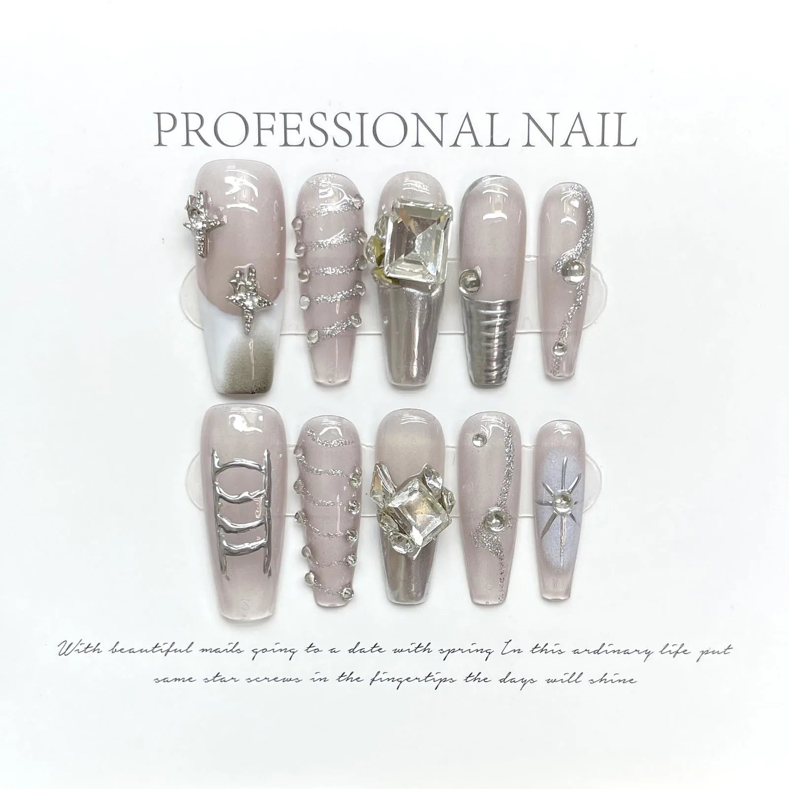 Versatile Nail Art: Ideal for diy nail design art salon, these shiny rhinestone almond press on nails allow you to express your creativity and style, making them perfect for home or professional use.