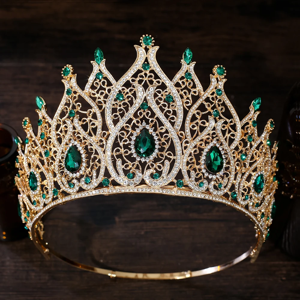 Jeweled Baroque Queen Crown - Rhinestone Wedding Crowns and Tiaras for Women, Costume Party Hair Accessories with Gemstones,Vic