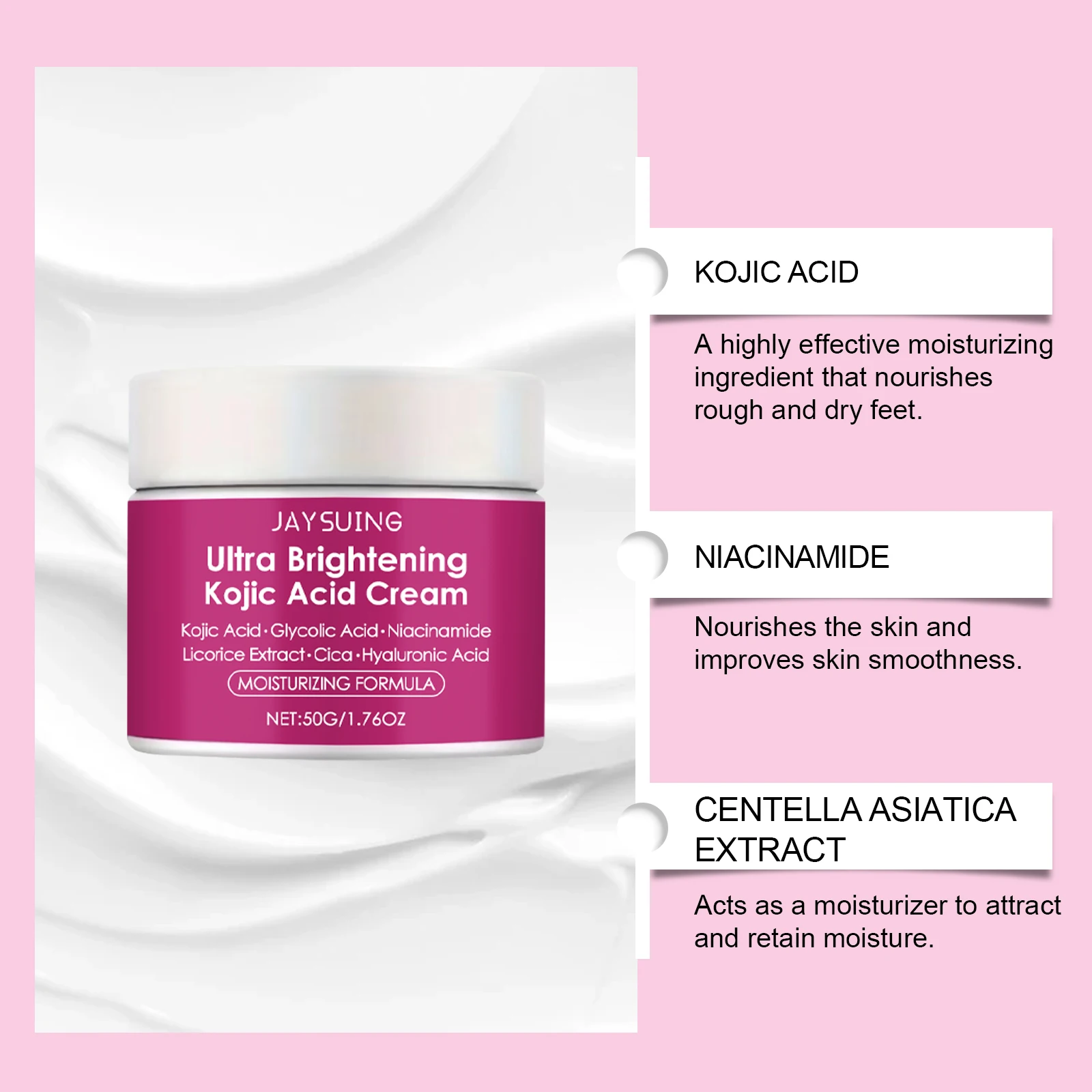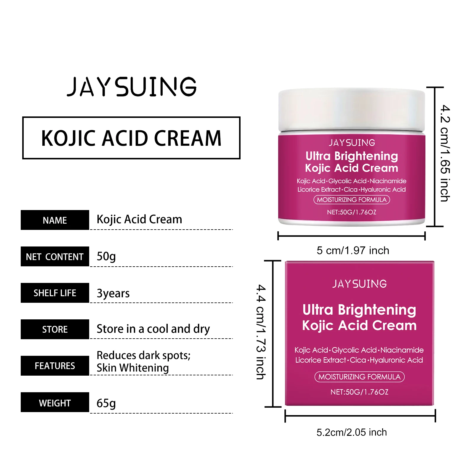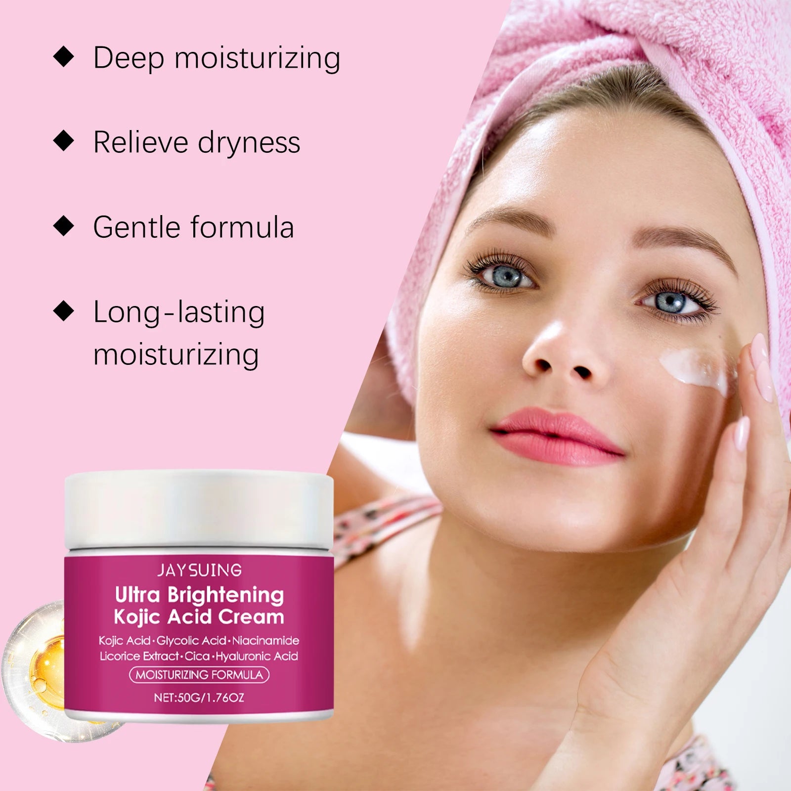 Jaysuing Kojic Acid Facial Cream Moisturizing Hydrating Smoothing Firm Face Reduce Dryness Discomfort Lighten Skin Tone Niacinamide Cream 50g