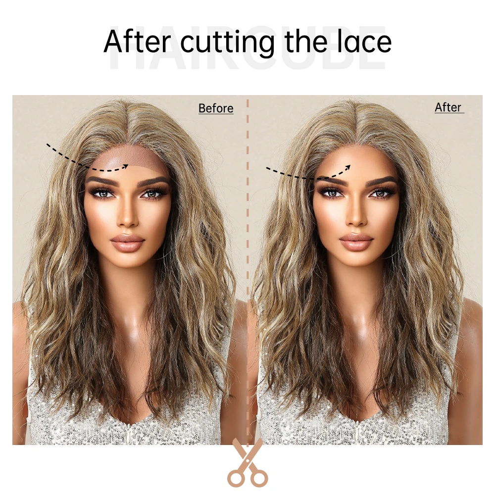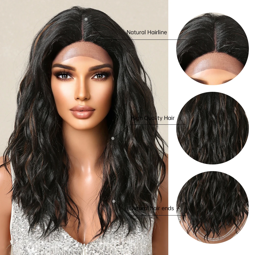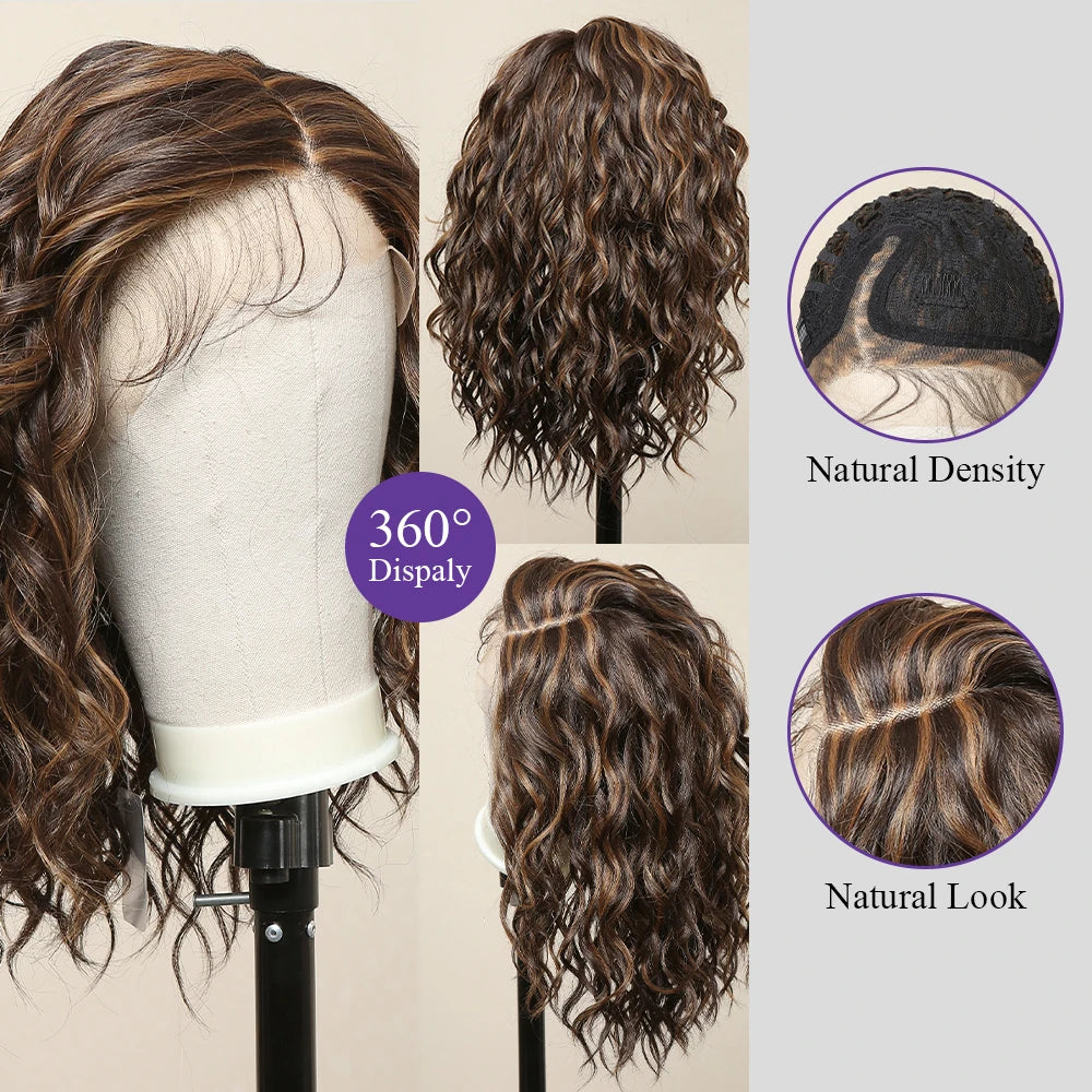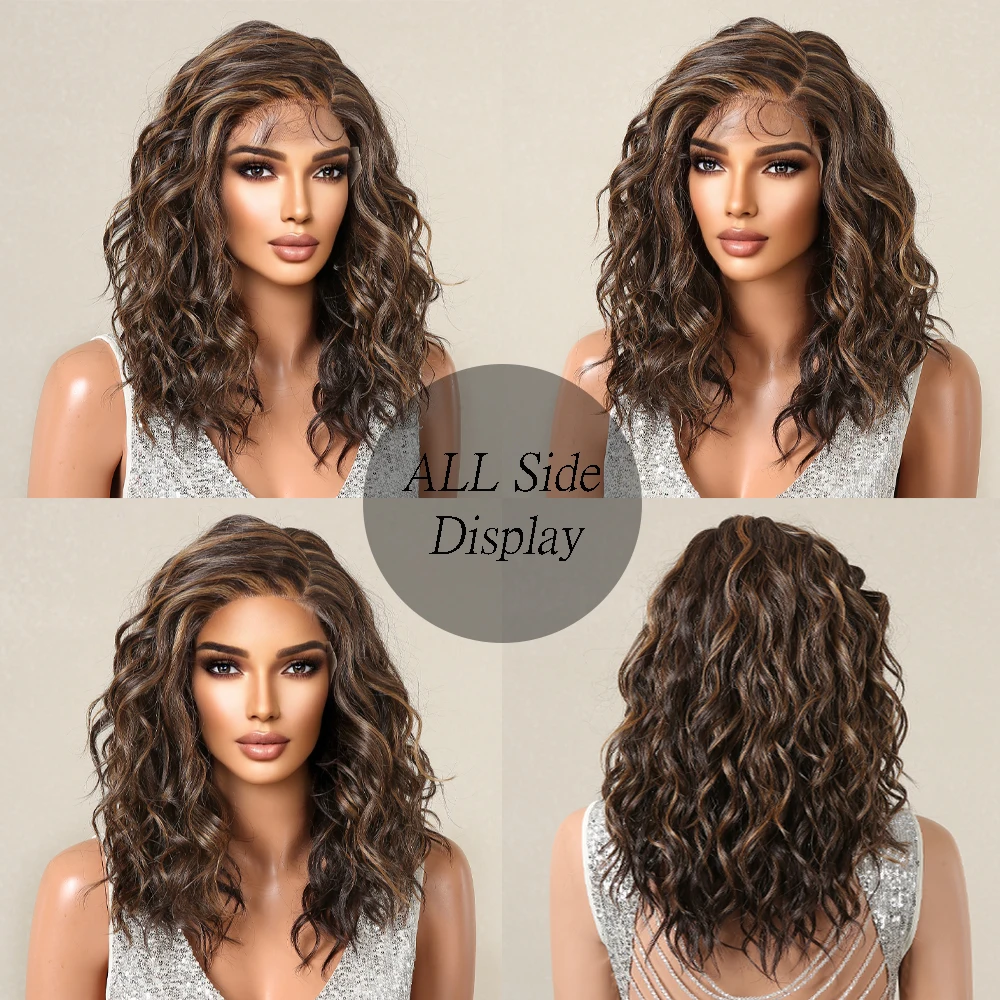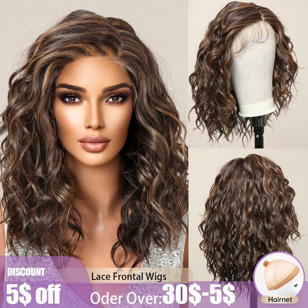 Lace Front Synthetic Wigs Preplucked Curly Wave Brown Golden Highlight Shoulder Length Lace Wig for Black Women Heat Resistant