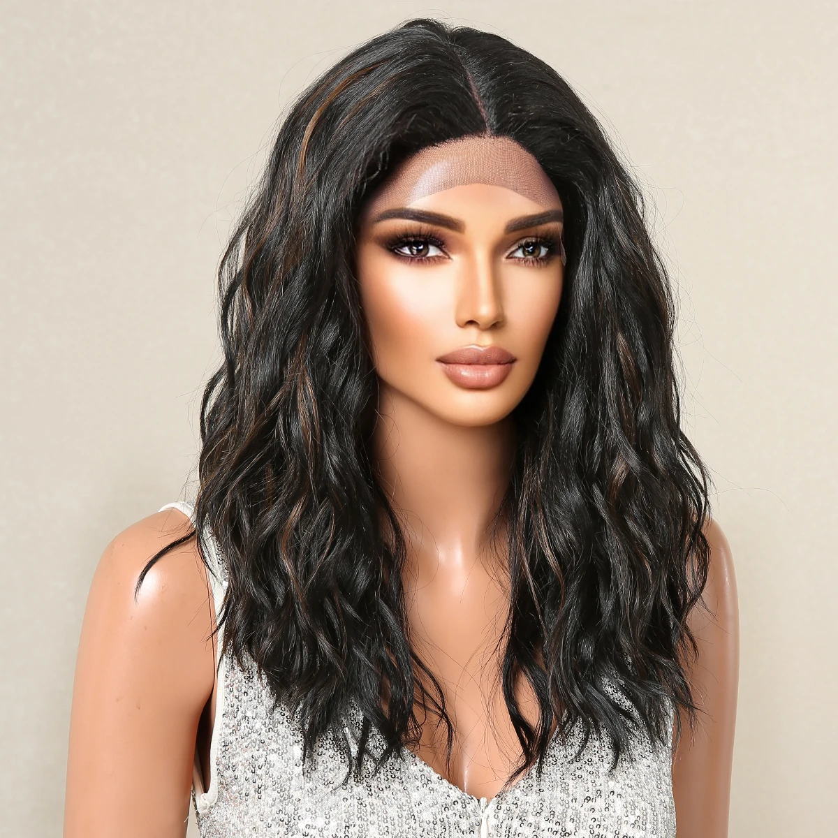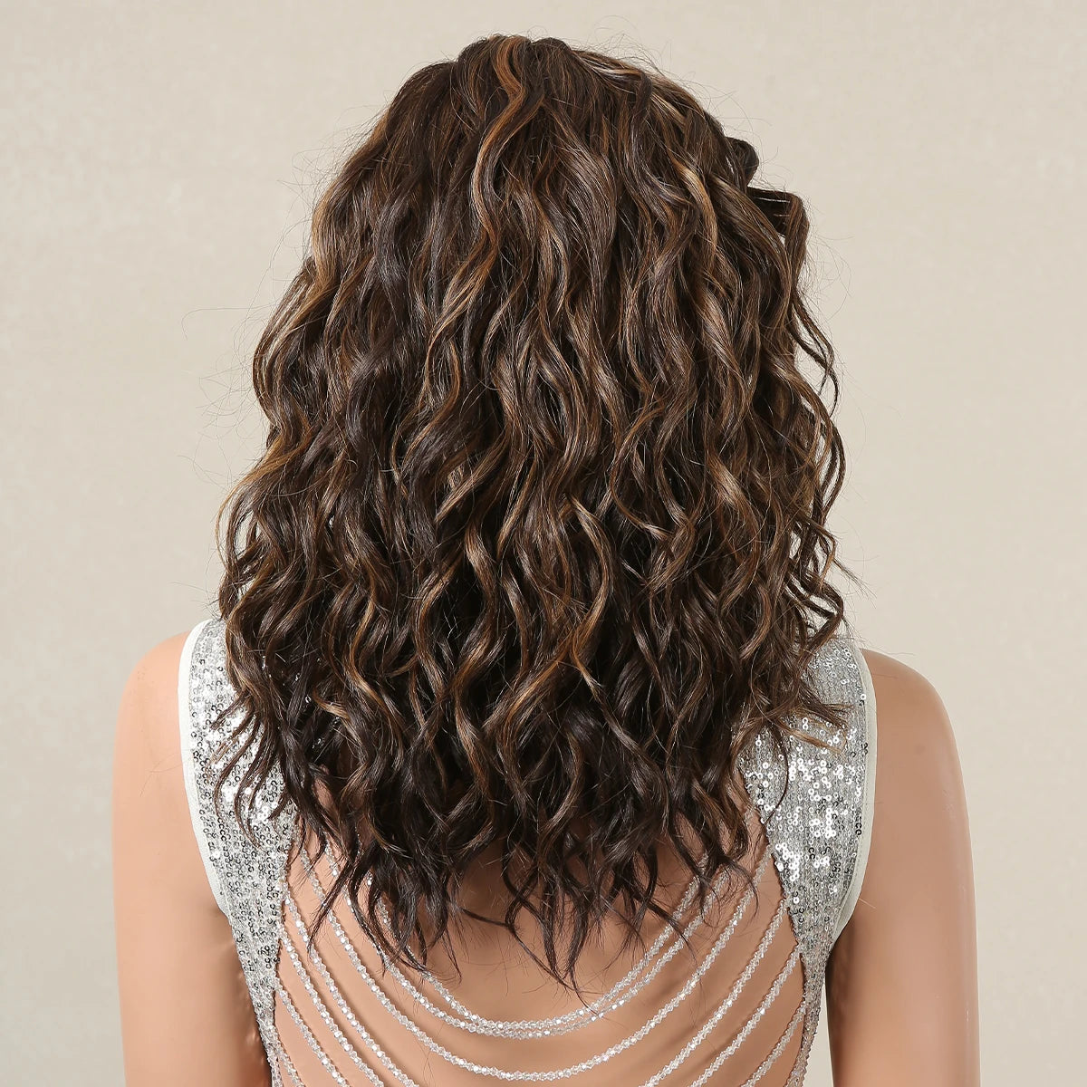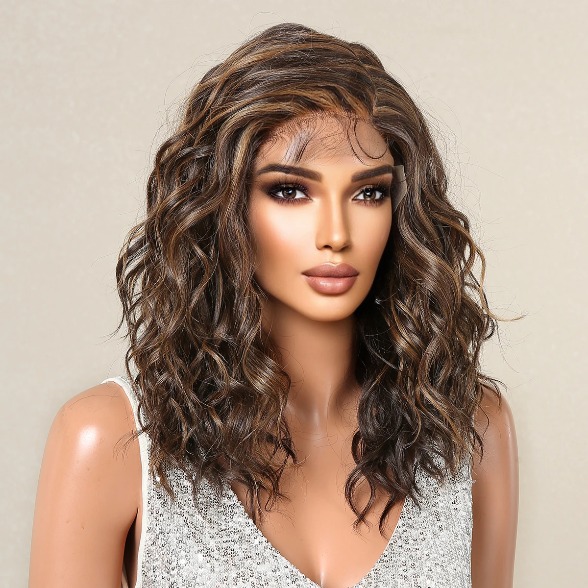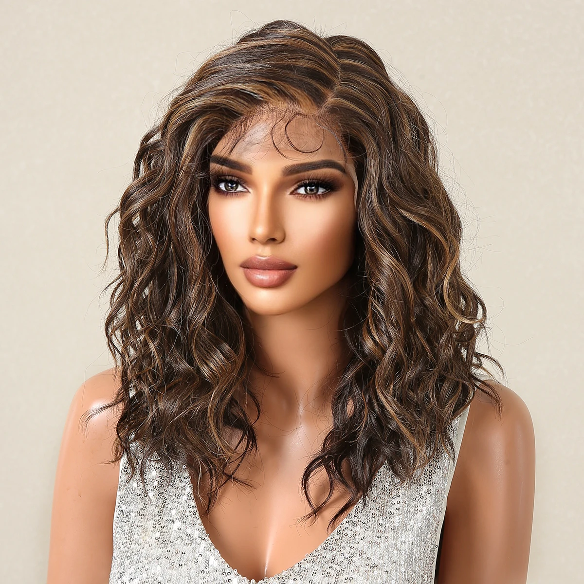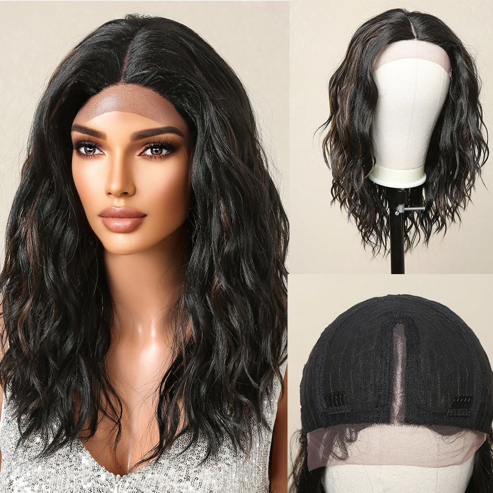 Lace Front Synthetic Wigs Preplucked Curly Wave Brown Golden Highlight Shoulder Length Lace Wig for Black Women Heat Resistant