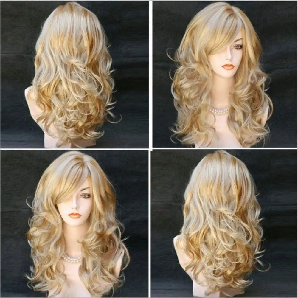 Ladies Blonde Long Curly Wigs Women Natural Wavy Synthetic Hair Cosplay Full Wig Fashion Party Supplies