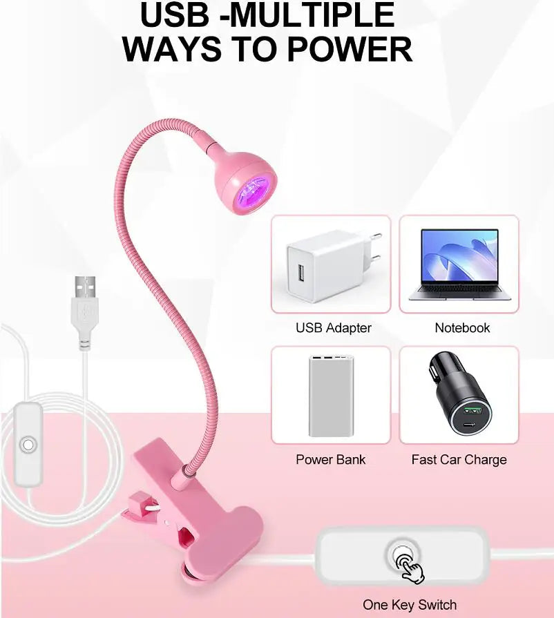 LED Nail Lamps 3W Flexible Gooseneck Lamp Quicky Dry Nail Manicure Dryer Gel Polish Curing Light for Gel Nails