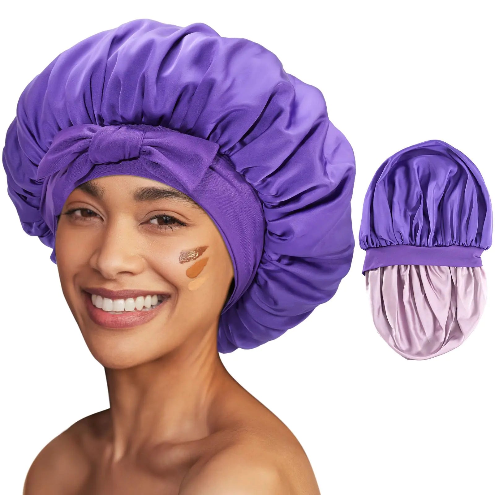 Lolalet Silk Bonnet for Sleeping Women Double Layer Satin Hair Bonnet Cap with Tie Band Reversible Bonnets for Dreadlocks Afro Braids Curly -Purple