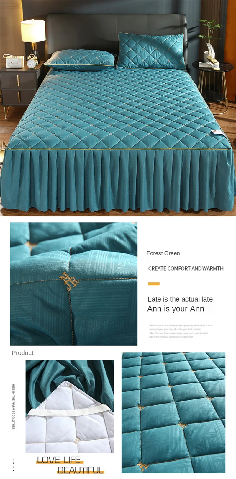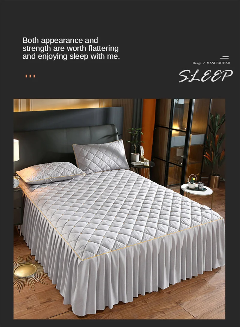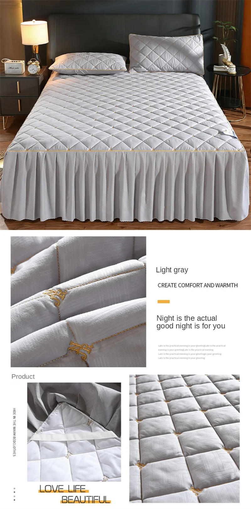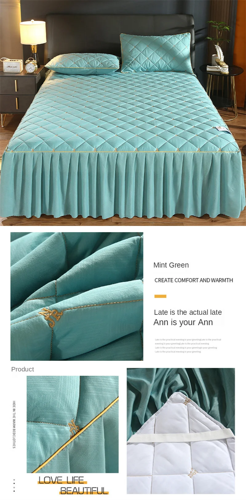 Luxury Thicken Pink Quilted Bed Spread Queen Size Nordic High Quality Pleated Edge Bedspread on The Bed Embroidery Bedspreads