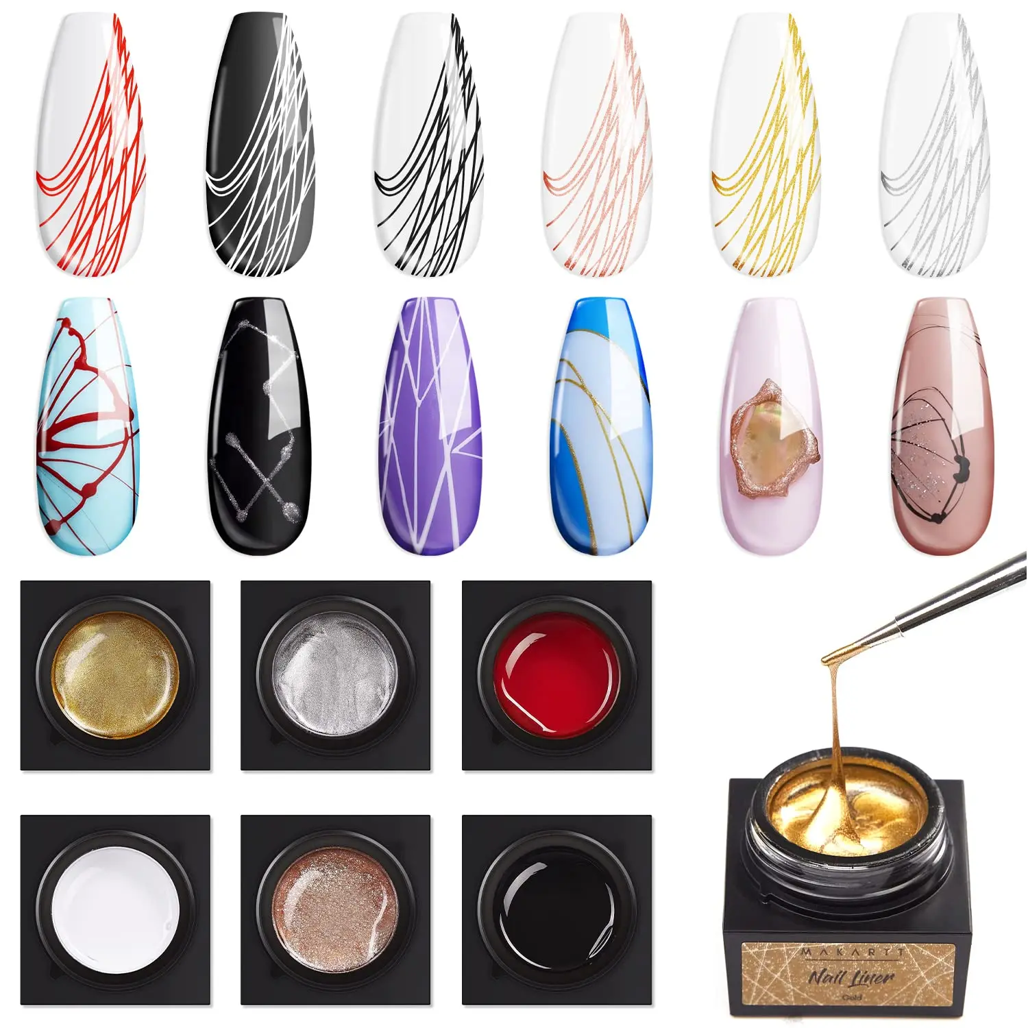 Makartt 6 Colors Spider Gel Polish for Elastic Nail Art Paint Drawing Spider Gel for Line White Black Red Rose Gold Silver