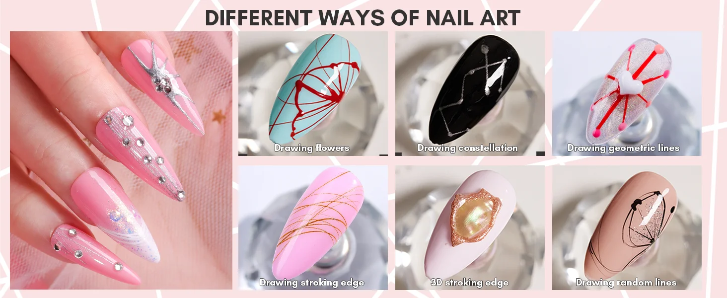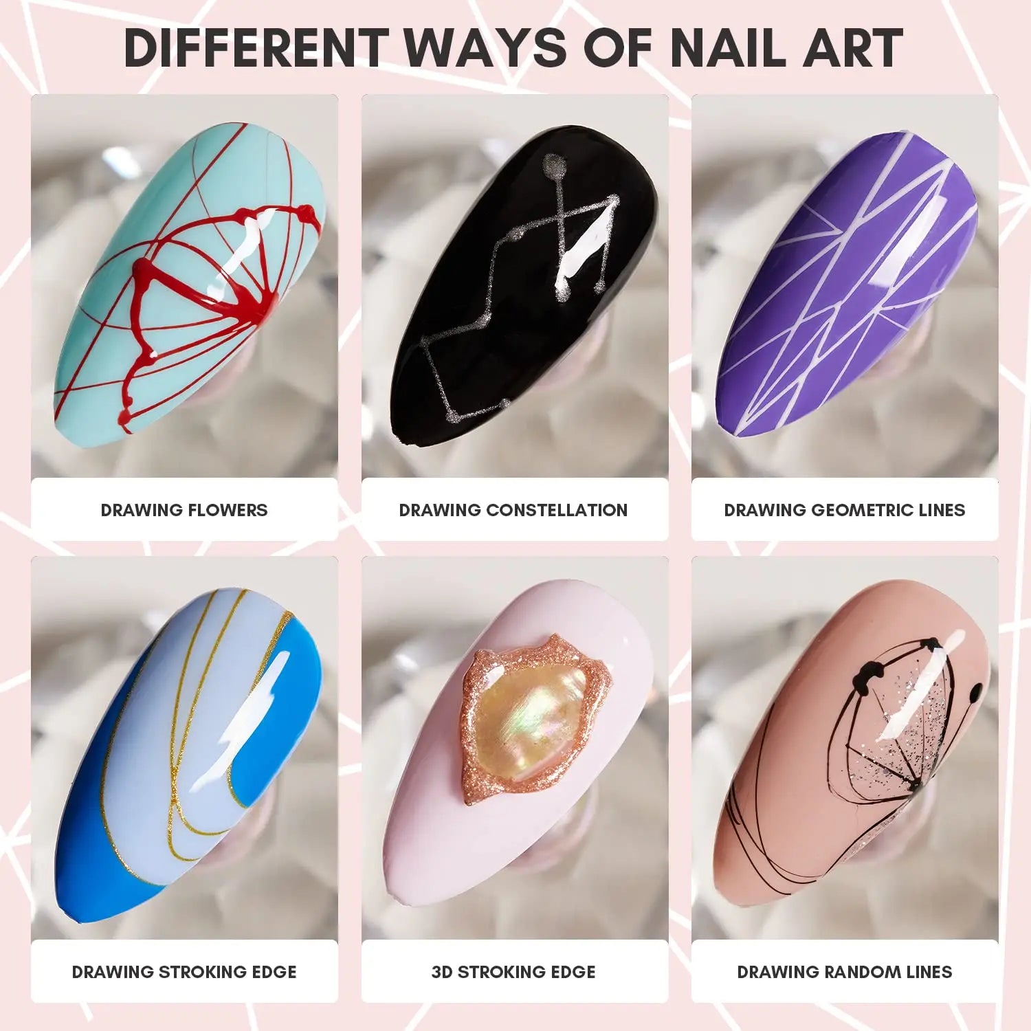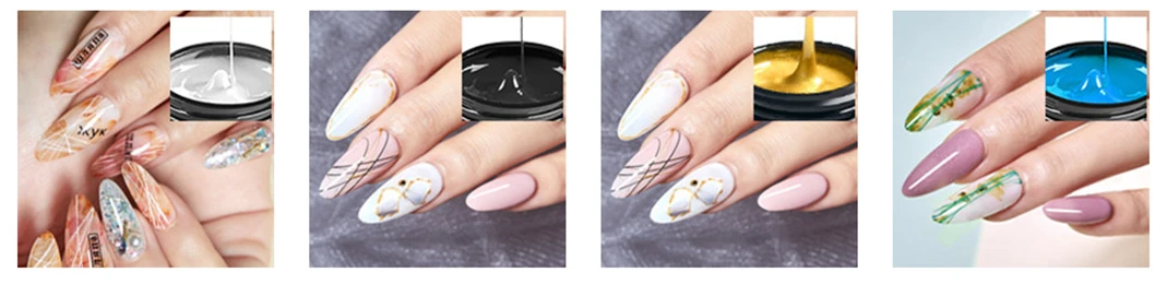 Line Precise Application--The 3D sculpting gel for nail art with sticky texture, flexibility, and toughness. You can quickly and easily draw lines from one contact point to another, helping you to draw perfect and precise straight lines.
