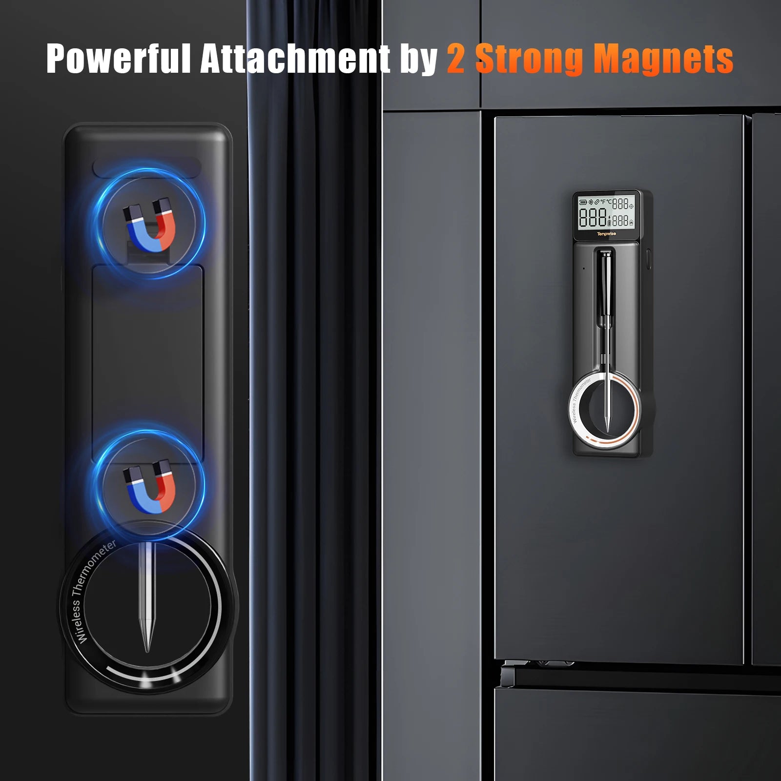 Meat thermometer wireless Bluetooth IP67 ultra thin probe with LCD display temperature alarms for cooking grilling roasting