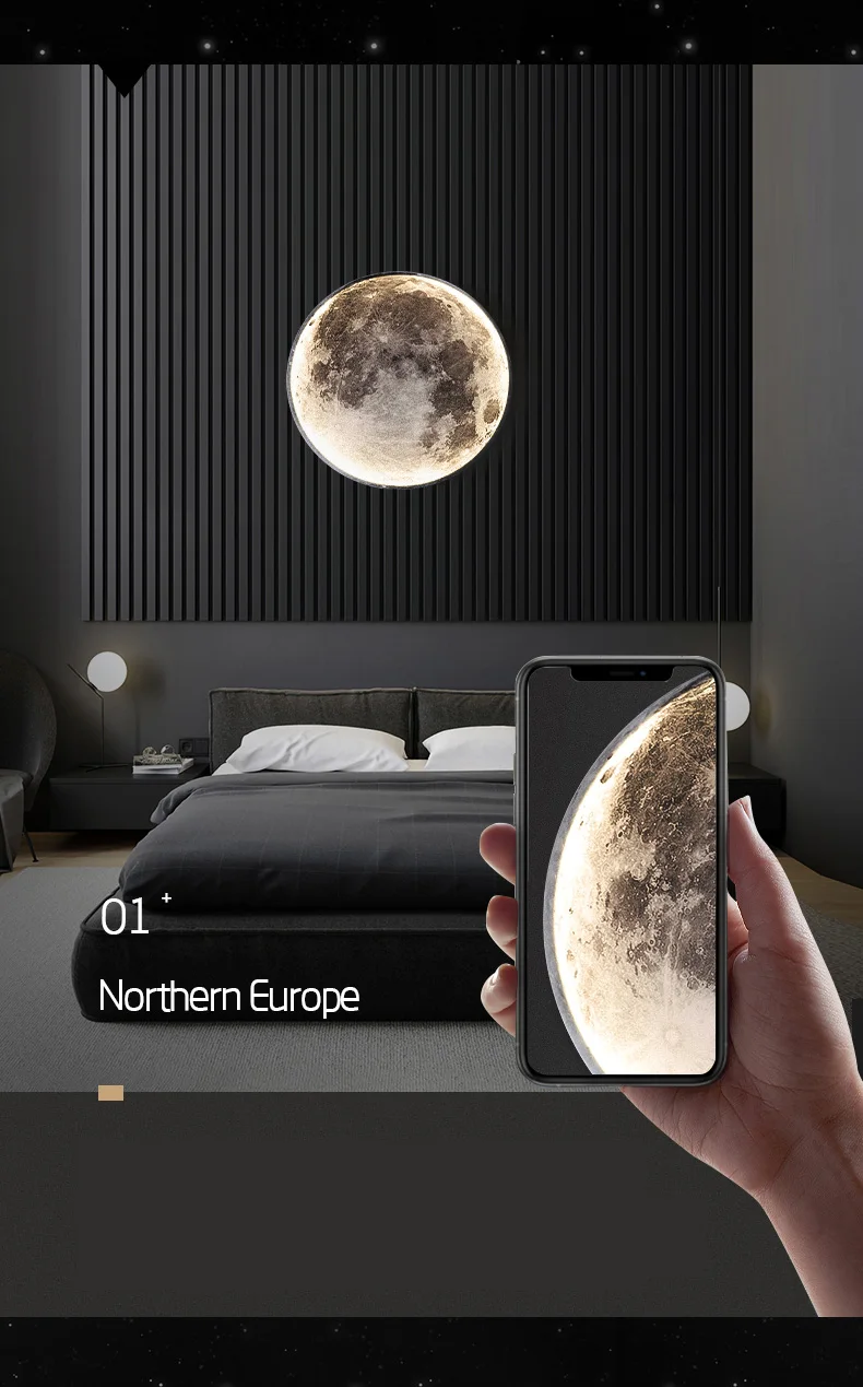 Modern moon wall lamp creative mural living room background wall decoration lamp minimalist art bedside wall light
