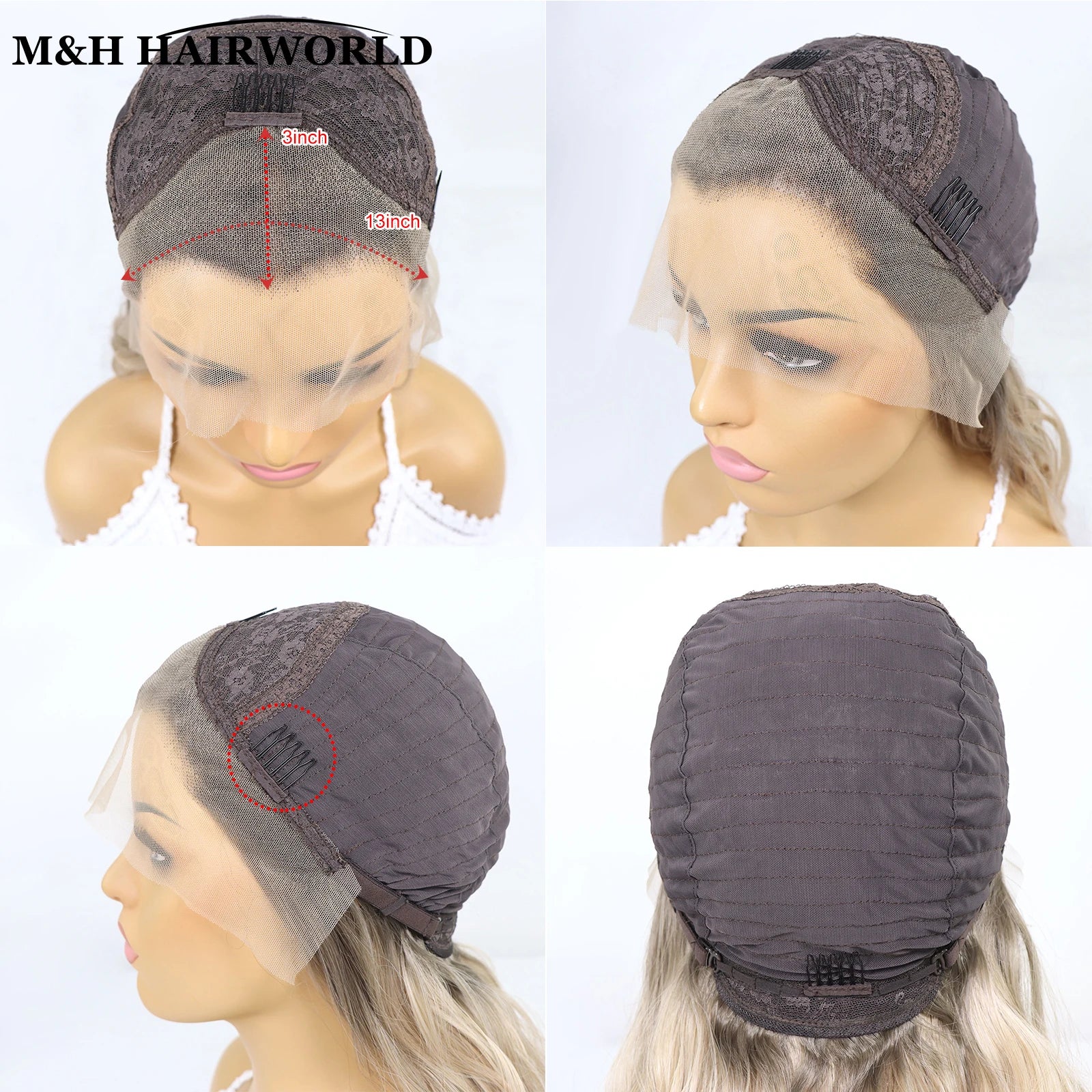 Ombre Blonde Colored 13x3 Lace Front Wig 30Inch Long Loose Body Wave Wigs Dark Root Synthetic Hair Lace Frontal Wigs For Women