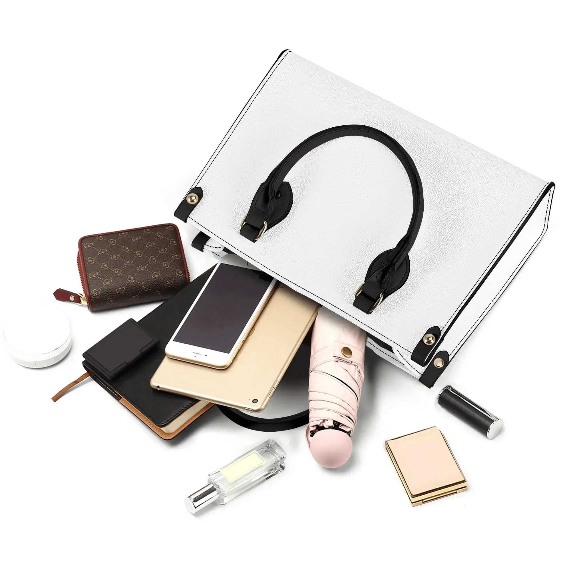 Personal Customize New Version Luxury Women PU Handbag Gift for Ladies with 2 Side Pocket Bag All Over Printing Customized Style