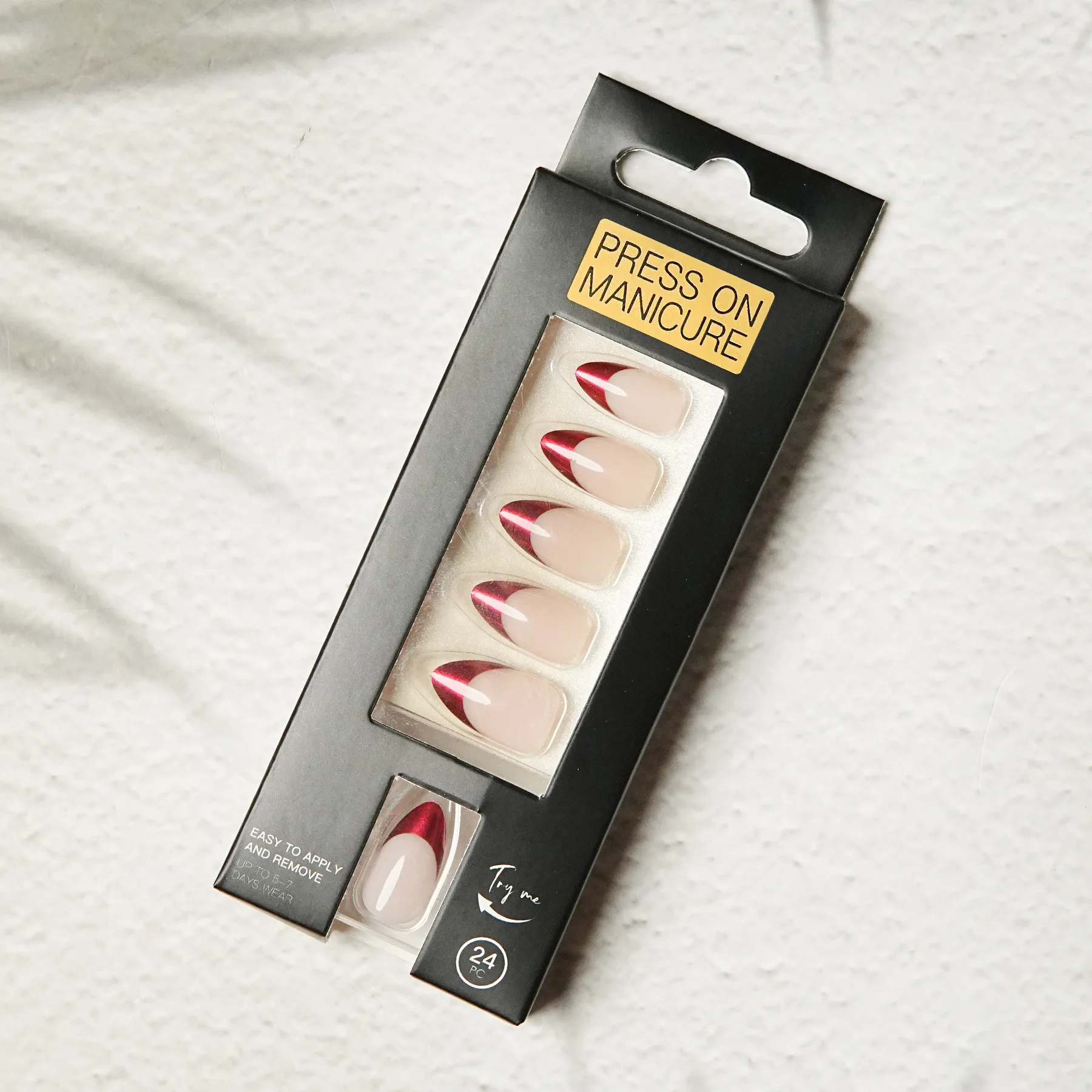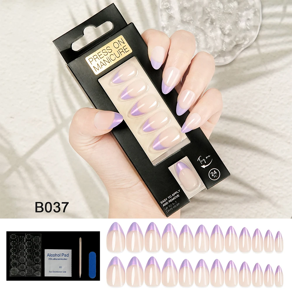 Press on Nails Almond French Design False Nails Simple Design Acrylic Nail Tips Reusable Fake Nails Decorated Nail Art