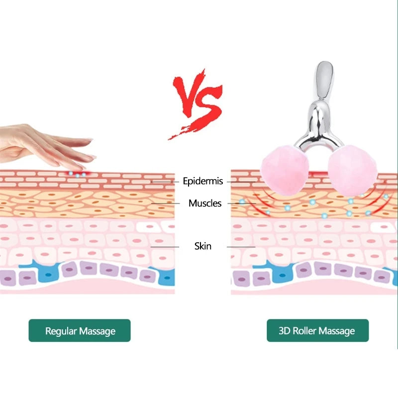 Rose Quartz Jade Roller Facial Massager 3D Massage Face Roller Face-lift Skin Care Tool Thin Face Chin Neck Body Wrinkle Remover