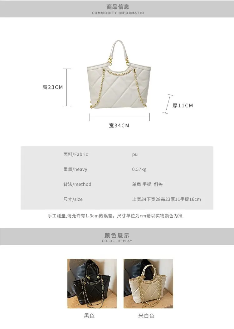 Trendy Tote Bag for Women - Stylish Chain Shoulder Purse, Spacious Crossbody Bag, Adjustable Strap, Fashionable Casual Handbag