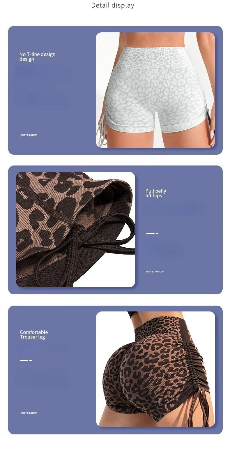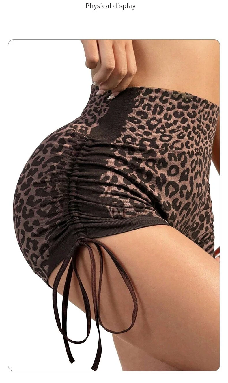 Women High Waist Yoga Shorts Side Drawstring Sexy Leopard Print Sports Shorts Gym Athletic Running Leggings Workout Shorts
