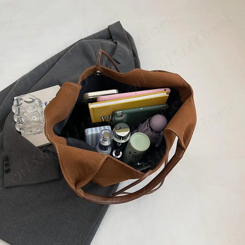 Women PU Tote Bag Designer Shoulder Bags Fashion Bucket Bag Large Capacity Suede Tote Purse Handbag Stylish Commuting Bag
