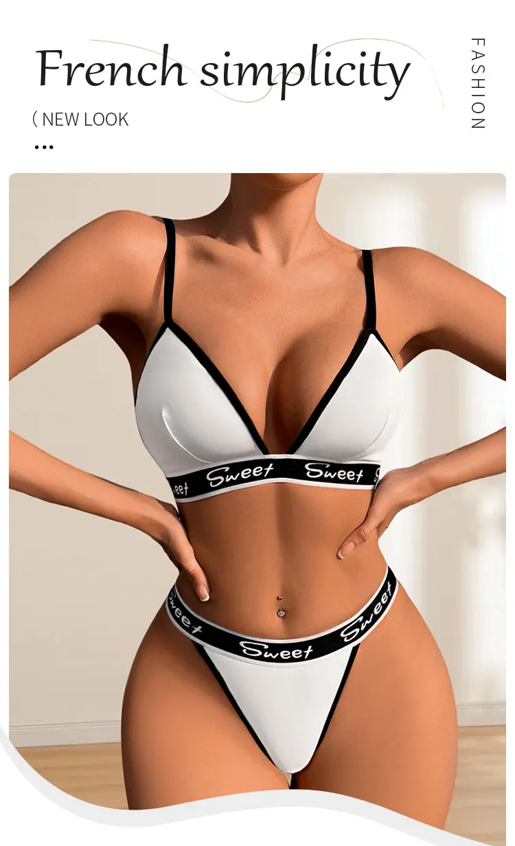 Women Sexy Underwear 2 Pcs Set Low Rise Letter Embroidery Sexy Lingerie Sets Breathable Comfort Elegant Thongs And Bras Outfits